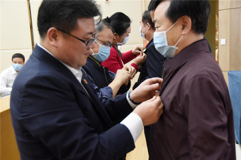 三位基建工程兵老兵的分享使青年員工們備受鼓舞,現(xiàn)場響起了雷鳴般的掌聲。工勘巖土集團(tuán)副總經(jīng)理馬君偉、閆京潔及總工辦高級(jí)顧問郭清分別為三位老兵送上工勘五四青年節(jié)紀(jì)念章。